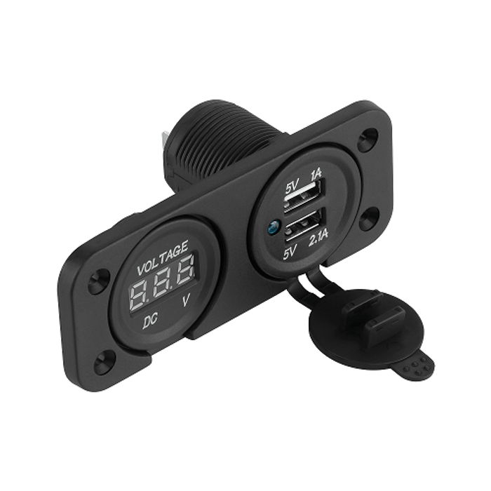 ![]() | Panel zawierający podwójne gniazdo USB oraz woltomierz.