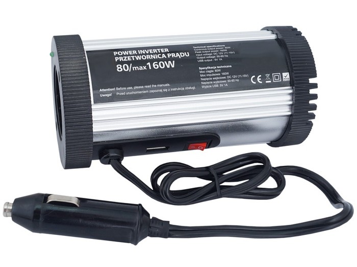 PRZETWORNICA PRĄDU 12V 230V 80/160W USB DO ŁODZI
